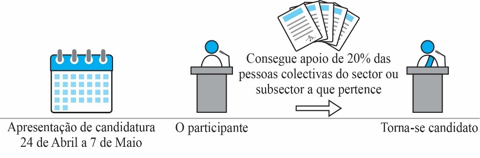 O indivíduo que reúna os requisitos para a candidatura, caso tenha interesse em se candidatar em determinado sector ou subsector, deve pedir apoio para a propositura às respectivas pessoas colectivas com capacidade de propositura.